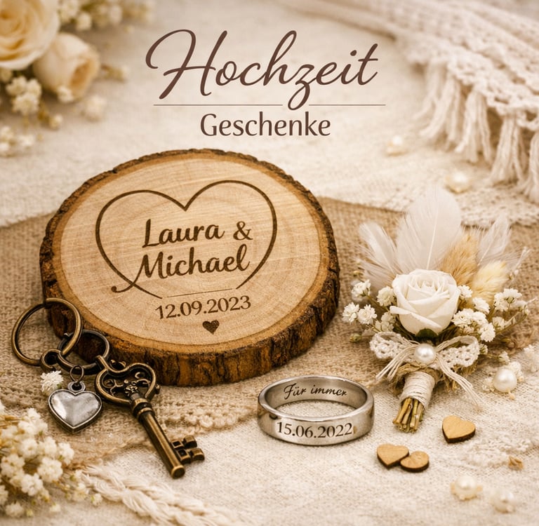 Romantische Geschenke zur Hochzeit – mit Liebe graviert und dekoriert.