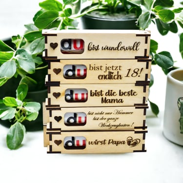 Du suchst nach einer originellen Möglichkeit, jemandem ein Lächeln zu schenken? Unsere handgefertigte Duplo-Box aus Holz ist perfekt für jeden Anlass – ob Geburtstag, Hochzeit, Valentinstag oder einfach so.